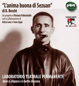 Il laboratorio è un percorso di studio e formazione diretta e creativa, finalizzata alla messa in scena originale dell’opera “L’anima buona del Sezuan” di Bertolt Brecht, con la guida pedagogica, l’adattamento e la regia di Renata Palminiello e con la collaborazione di Astra Lanz e di Sena Lippi.